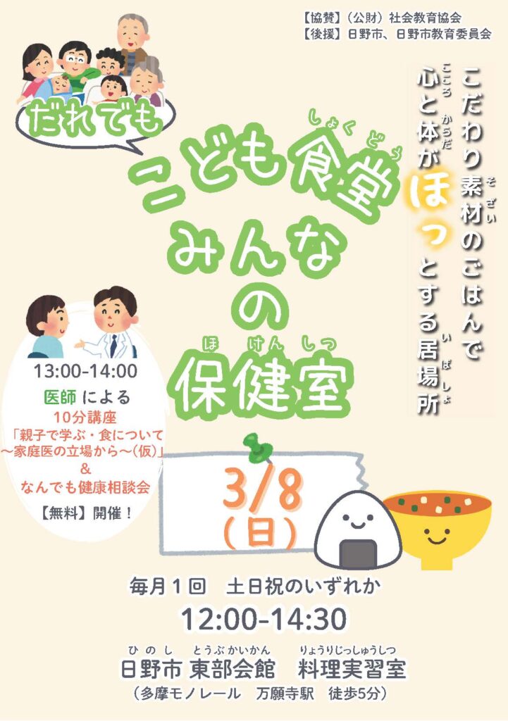 「親子で学ぶ・食について〜家庭医の立場から〜(仮)」&なんでも健康相談会を【無料】開催!